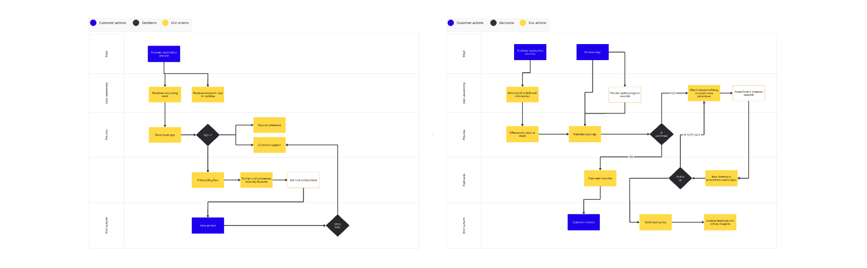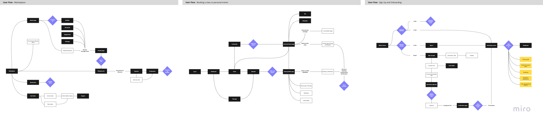Analyzed and restructured core flows such as class booking, workout tracking, and membership management to uncover friction and redundancies.User Journey Mapping