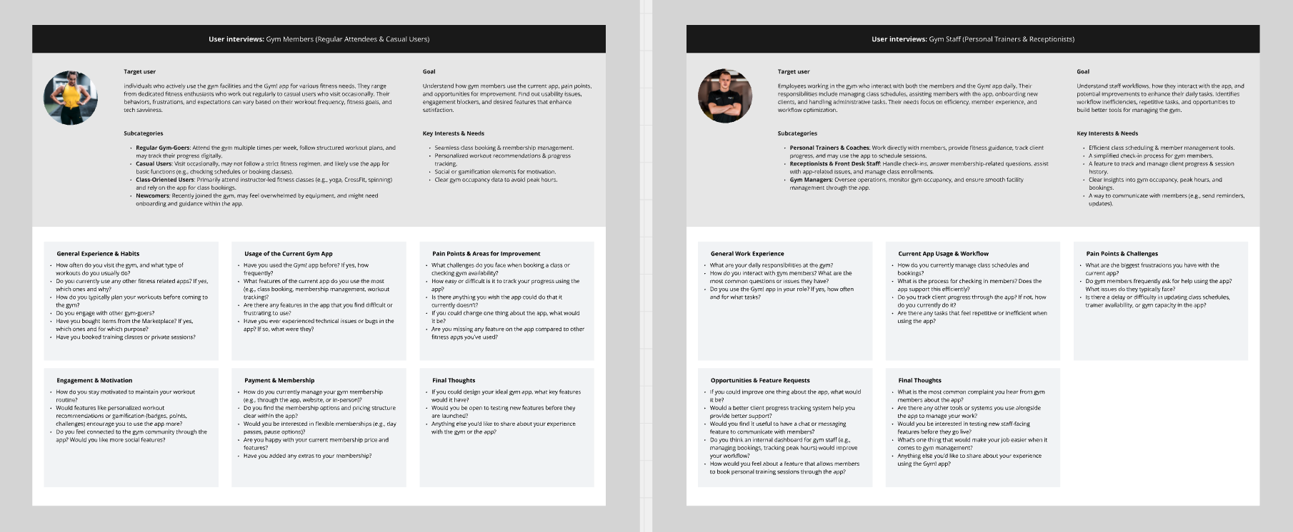Understanding user behavior, motivations, and friction points in the existing Gym! experience.